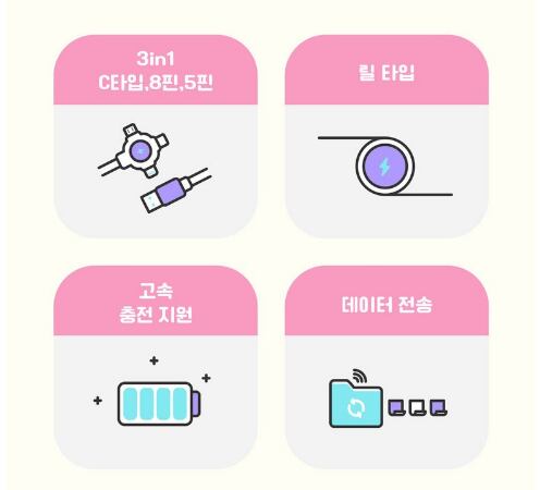かわいいキャラクターデザインと実用性を兼ね備えた高速充電ケーブルです。クロミやシナモロールのデザインが特徴で、持ち歩きたくなるような愛らしい見た目に仕上がっています。