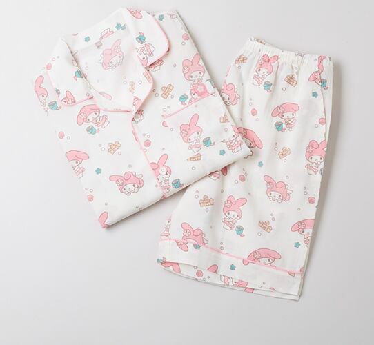 マイメロをモチーフにした、韓国限定デザインのルームウェアパジャマです。白をベースにマイメロのフェイスパターンが映える、かわいさと大人っぽさを兼ね備えたアイテムです。