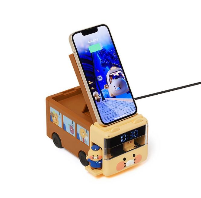 韓国の人気キャラクター「カカオフレンズ」より、チュンシクバスをモチーフにした2‑in‑1ワイヤレス充電対応のLEDクロックです。キャラクター性を活かした可愛いデザインと、実用的な機能が融合した一台。