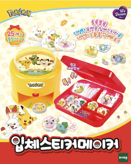 ポケモンのかわいいデザインで、ぷっくり立体ステッカーが作れるDIYセット。専用メーカーに材料をセットして押すだけの簡単仕様で、初めての工作遊びにもおすすめです。完成したステッカーは小物や文房具のデコレーションに使えます。