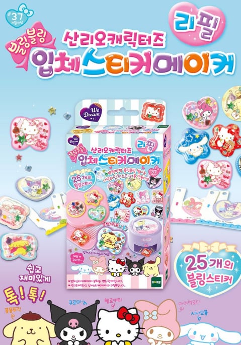 サンリオキャラクターたちのぷっくり可愛い立体シールが作れるステッカーメーカー詰め替え用です。