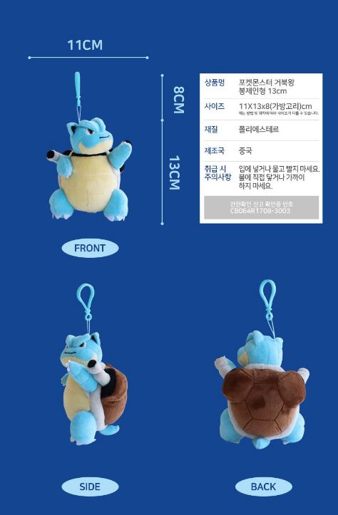 ポケットモンスターの人気キャラクター、**カメックス**のぬいぐるみキーホルダーです。