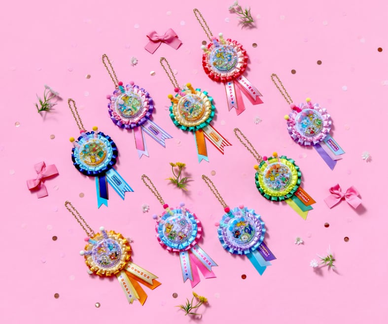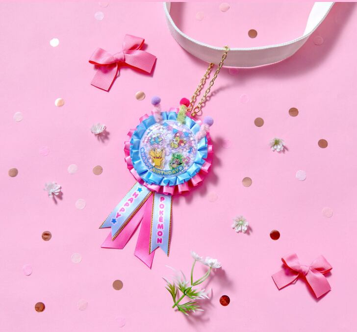 ピカチュウやポケモンたちがデザインされた、かわいいロゼット型キーホルダー。リボンとカラフルなデザインが特徴で、バッグやポーチに付けてアクセントとして楽しめます。