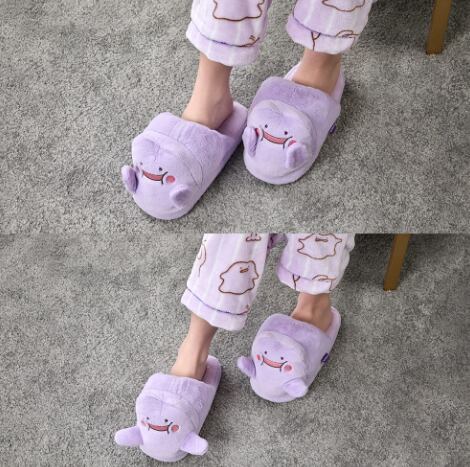 やさしいパープルカラーのメタモンがデザインされた、ポケモンストア限定のルームスリッパ。ふわふわ素材で履き心地が良く、おうち時間をかわいく快適にしてくれるアイテムです。