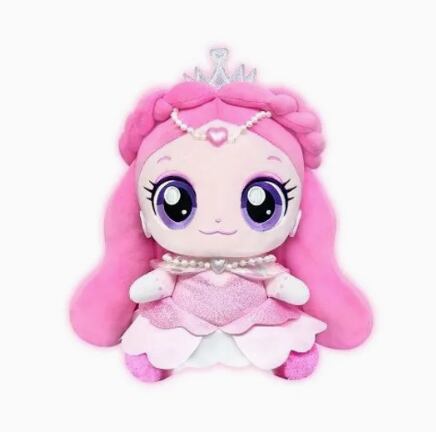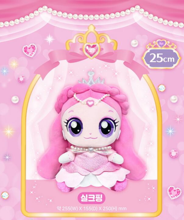 ティアラとパール装飾が華やかなシルクピンのぬいぐるみ。