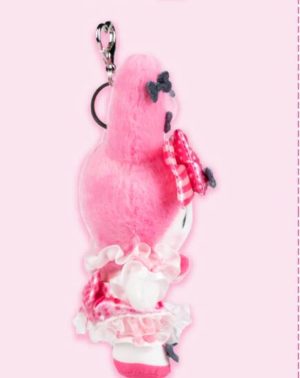 ふんわりピンクが可愛いマイメロディのマスコットキーホルダー。ドット×チェックの大きなリボンと、フリルたっぷりの衣装がガーリーで存在感抜群。バッグやポーチにつけるだけで一気に可愛さアップ。