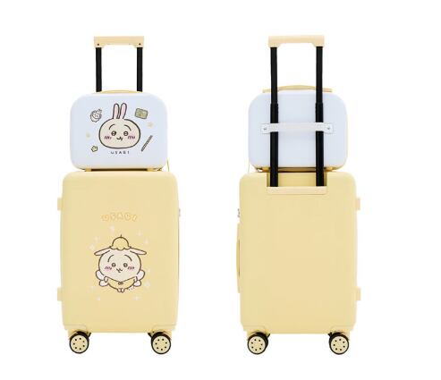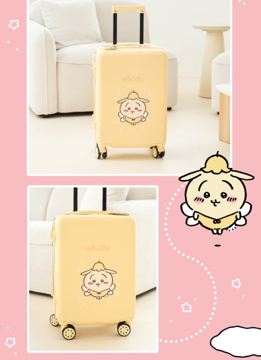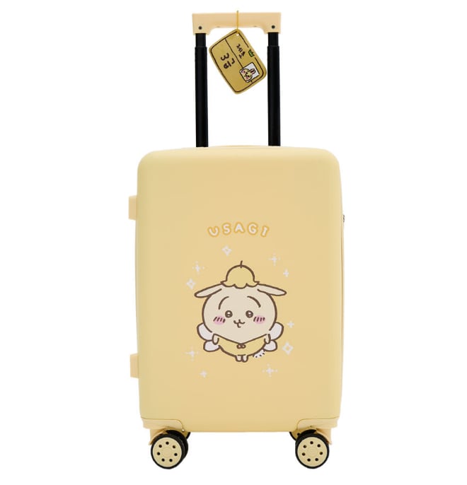 人気キャラクター「ちいかわ」のうさぎデザインが可愛いキャリーケース。やさしいイエローカラーに、ゆるっとした表情のうさぎが映えるデザインで、持っているだけで気分が上がるアイテム。旅行や推し活にもぴったりです。