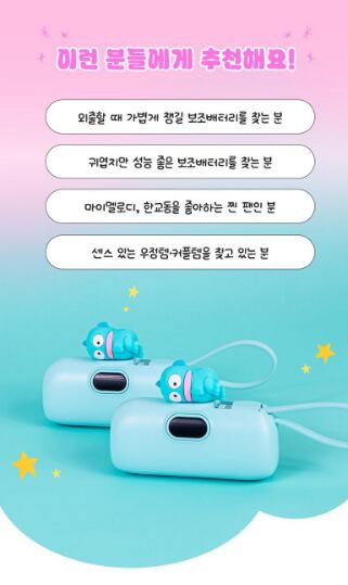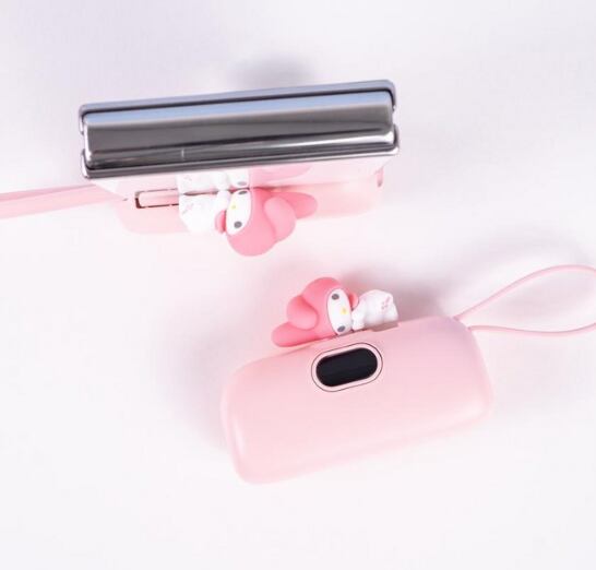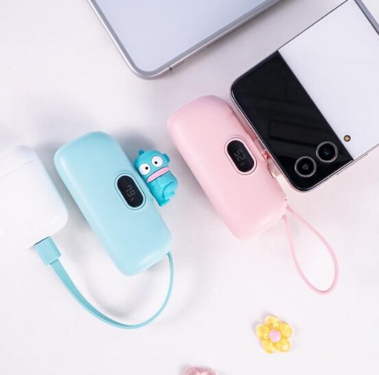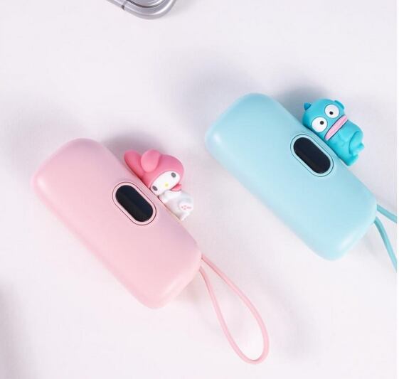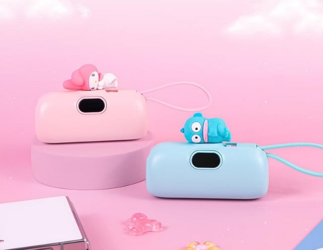 サンリオの人気キャラクターがちょこんと乗った可愛いミニモバイルバッテリー。コンパクトサイズで持ち運びやすく、外出先でもしっかり充電できる便利アイテム。見た目の可愛さと機能性を兼ね備えた一品です。